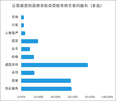 中國消費者報報道(記者裴瑩)為更好地了解各類消費中常見的問題和侵權現象,《中國消費者報》聯合今日頭條財經頻道聯合開展了“2020消費維權調查”。調查結果显示,參与調查者中,近四成認為家用电子電器類消費侵權問題在眾多商品消費類型中最為突出;近八成認為虛假宣傳是讓其感到權益受損的主要問題。