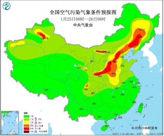 25日至26日白天,受弱冷空氣影響和降水共同影響,山東中東部霾天氣將明顯消散,但河北中南部、河南中西部等地霾天氣將緩慢減弱或維持。此外,26日夜間至28日,區域大部大氣擴散條件再次轉差,有輕到中度霾,局地重度霾。