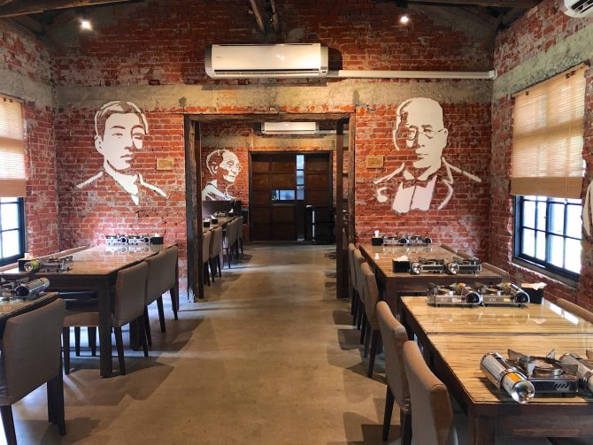 善化糖廠裡的「廳舍餐廳」,牆上人頭肖像都是近百年來與台灣文學或台灣糖業相關的人,最特殊是,他們都是用原本長了壁癌的混凝土牆壁敲打而成,完全展現設計師功力。