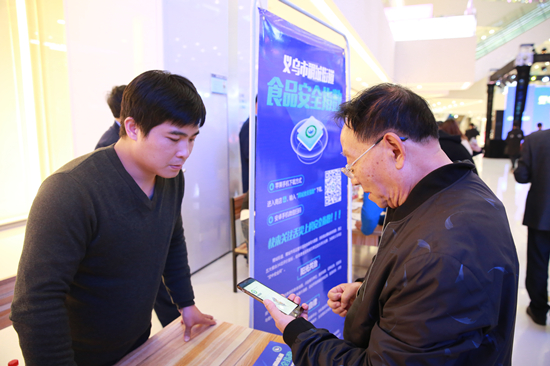 食品安全指數APP啟動現場,消費者在工作人員指導下安裝APP。
